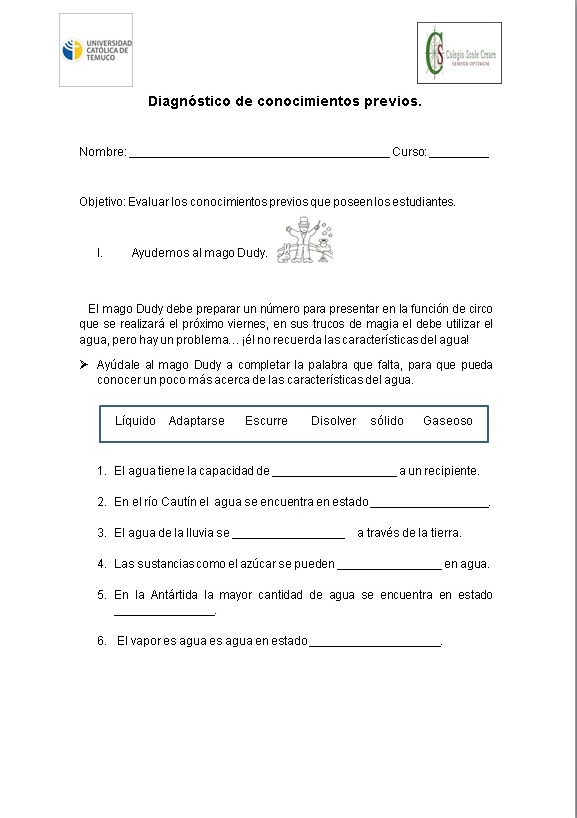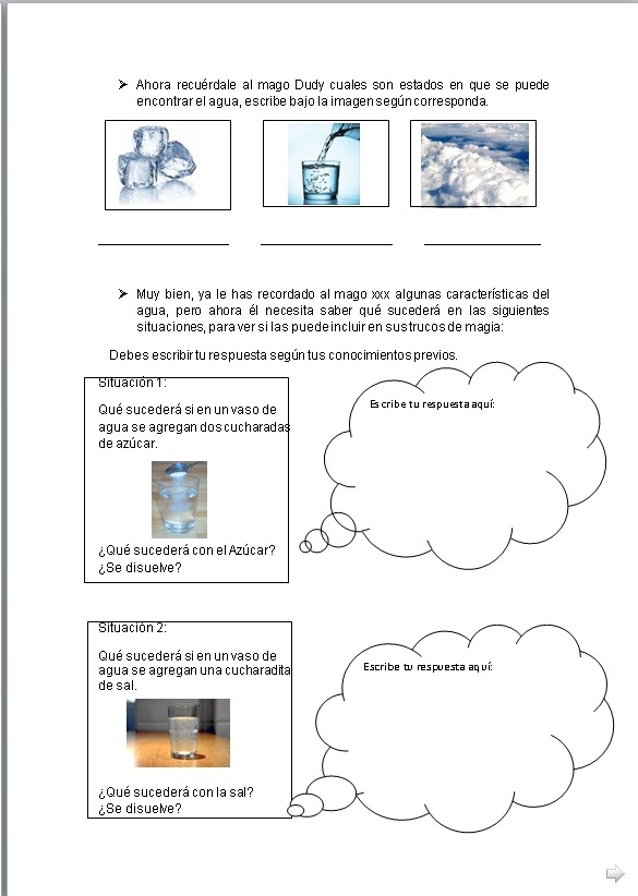 3. Reconoce características del agua tales como escurrir y adaptarse a la forma de un recipiente. |