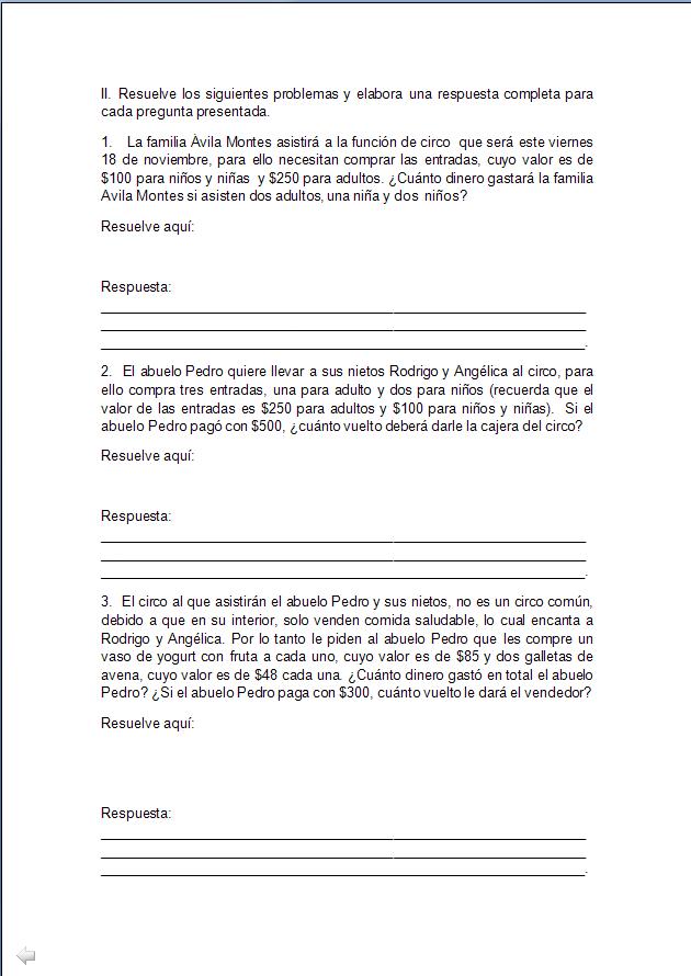 b) Respuesta: La familia Ávila Montes gastará $800 en total, en la compra de entradas para el circo (Por ejemplo).